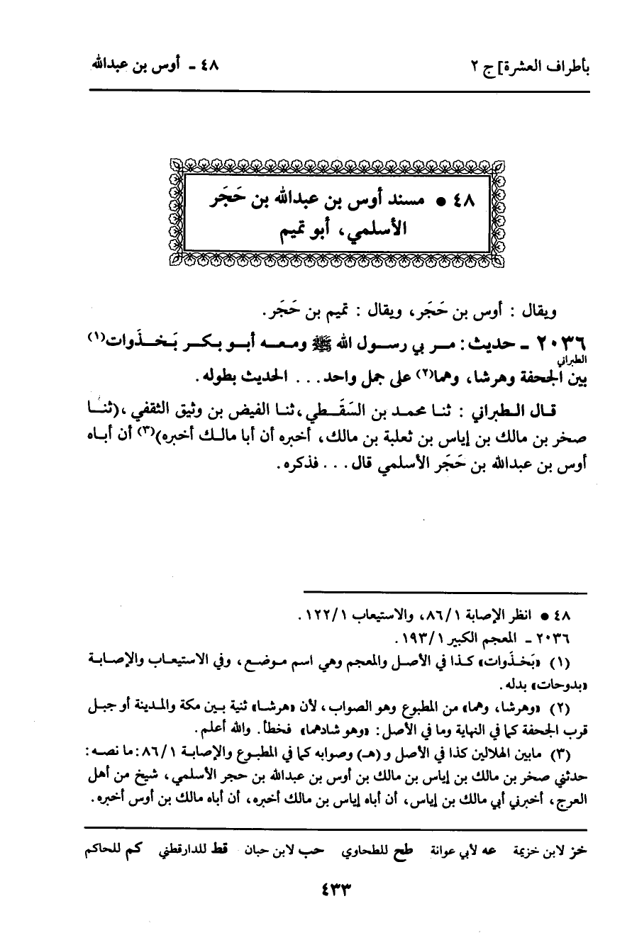 48 ـ مُسْنَدُ أَوْسِ بْنِ عَبْدِ اللَّهِ بْنِ حَجَرٍ الأَسْلَمِيِّ، أَبُو تَمِيمٍ.