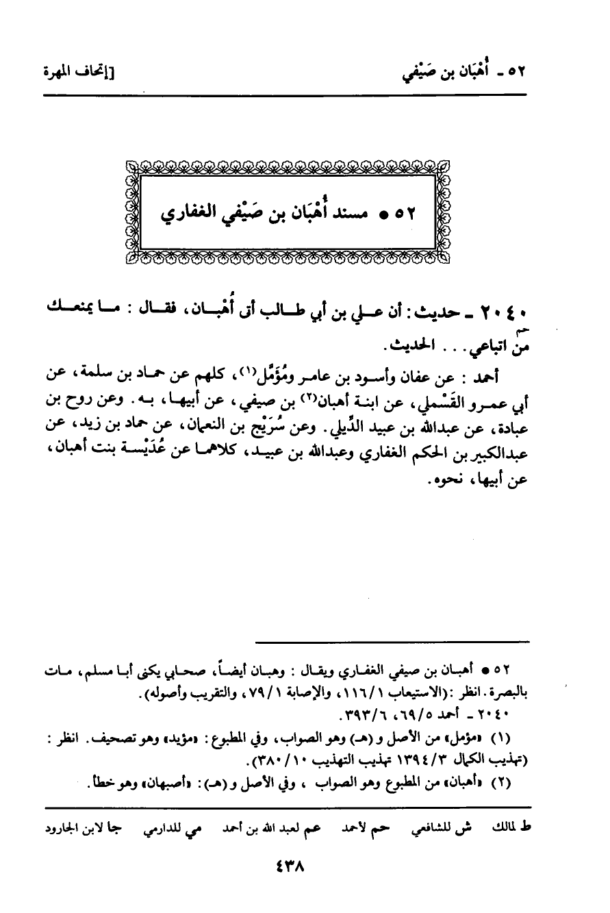 52 ـ مُسْنَدُ أُهْبَانَ بْنِ صَيْفِيٍّ الْغِفَارِيِّ.