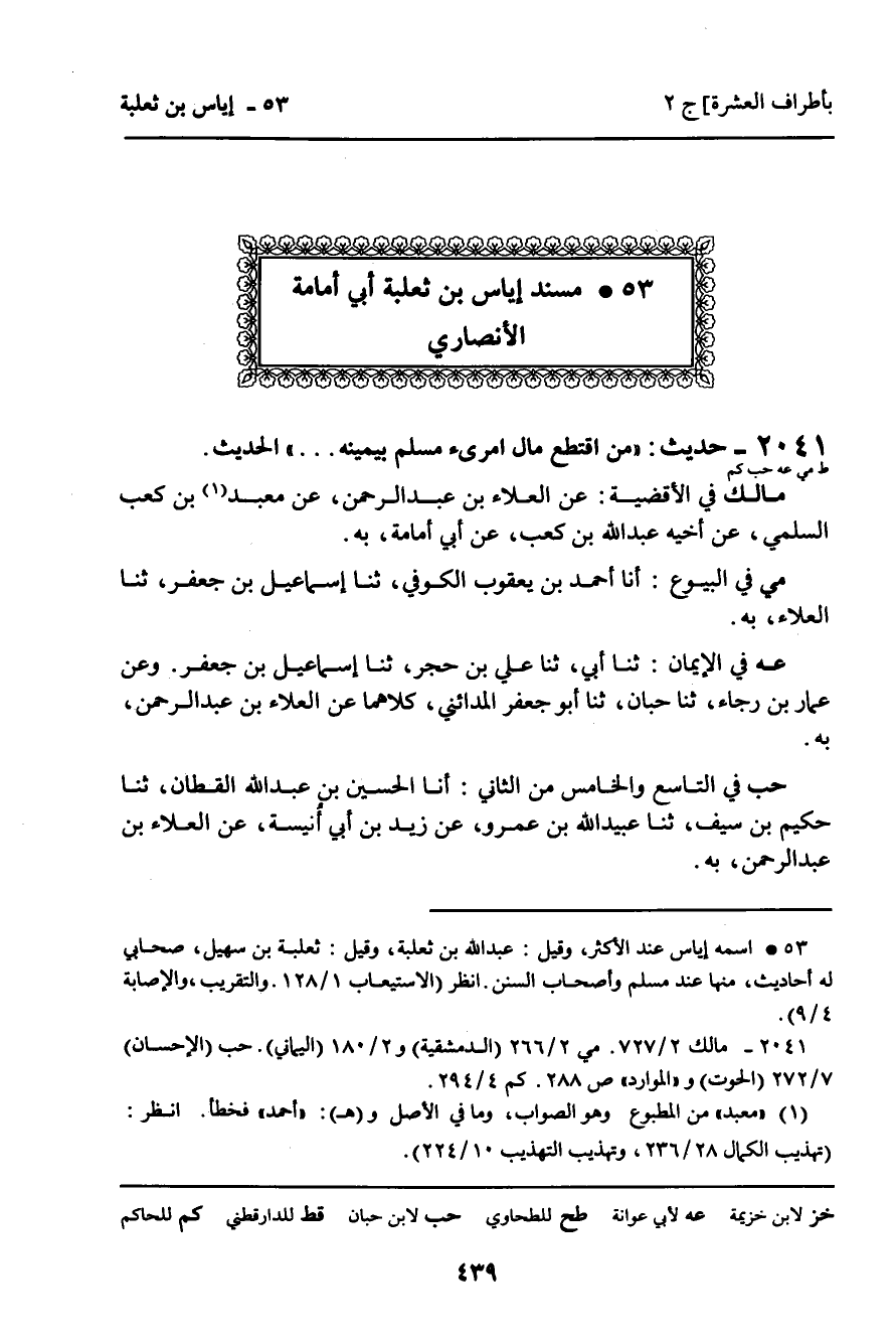 53 ـ مُسْنَدُ إِيَاسِ بْنِ ثَعْلَبَةَ أَبِي أُمَامَةَ الأَنْصَارِيِّ.