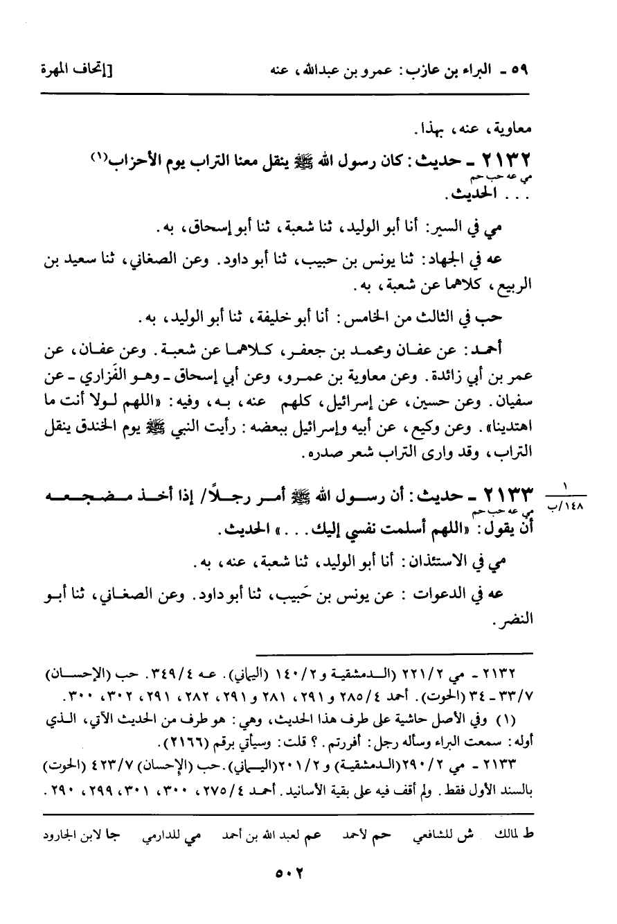 2132 - حَدِيثٌ (مي عه حب حم) : كَانَ رَسُولُ اللَّهِ، صلى الله عليه وسلم، يَنْقِلُ مَعَنَا التُّرَابَ يَوْمَ الأَحْزَابِ ... الْحَدِيثَ.
