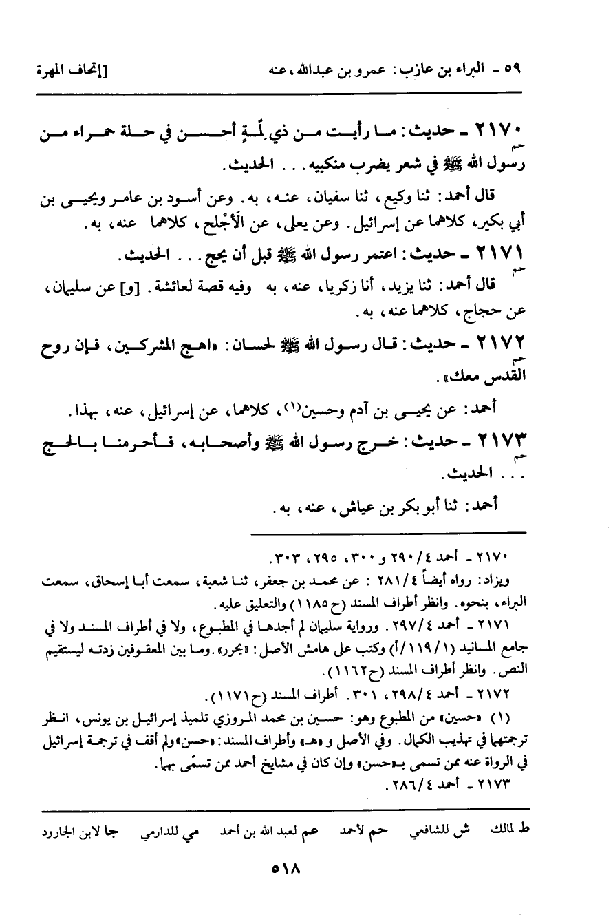 2171 - حَدِيثٌ (حم) : اعْتَمَرَ رَسُولُ اللَّهِ، صلى الله عليه وسلم، قَبْلَ أَنْ يَحِجَّ ... الْحَدِيثَ.