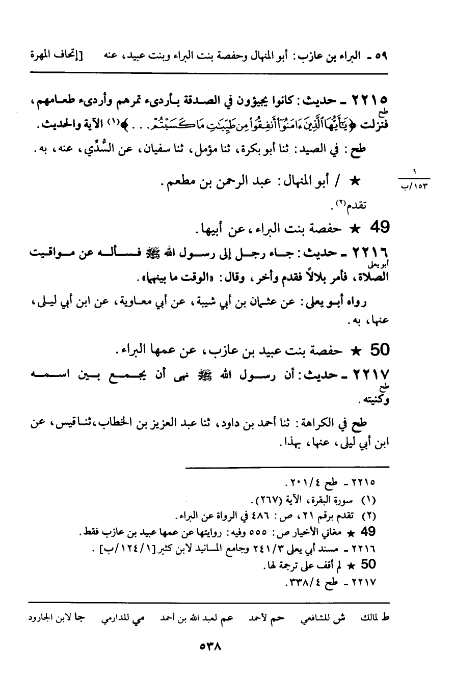 ـ حَفْصَةُ بِنْتُ الْبَرَاءِ عَنْ أَبِيهَا.
