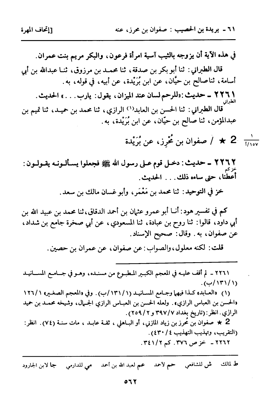 ـ صَفْوَانُ بْنُ مُحْرِزٍ، عَنْ بُرَيْدَةَ.