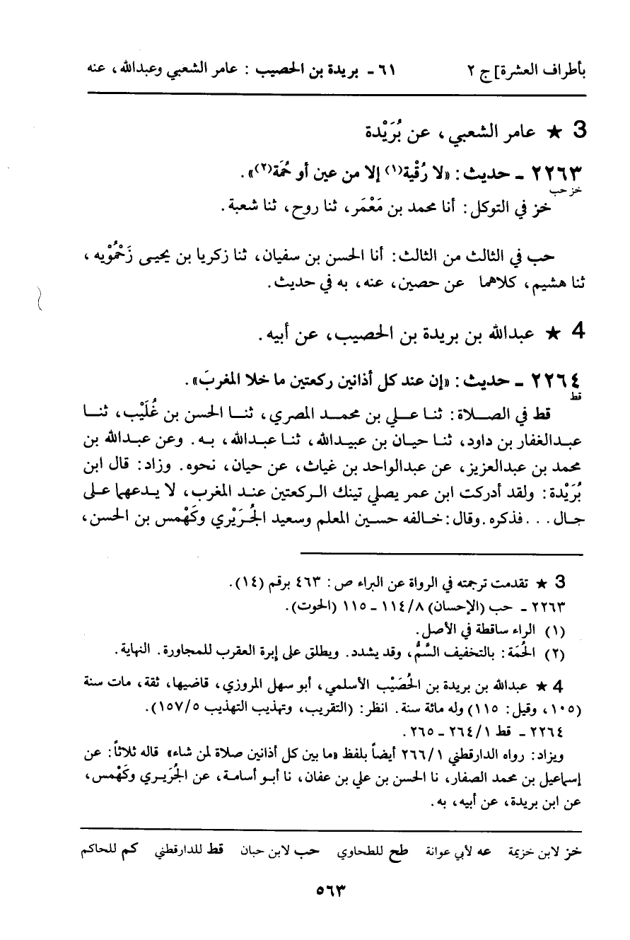 2263 - حَدِيثٌ (خز حب) : " لا رُقْيَةَ إِلا مِنْ عَيْنٍ أَوْ حُمَةٍ ".