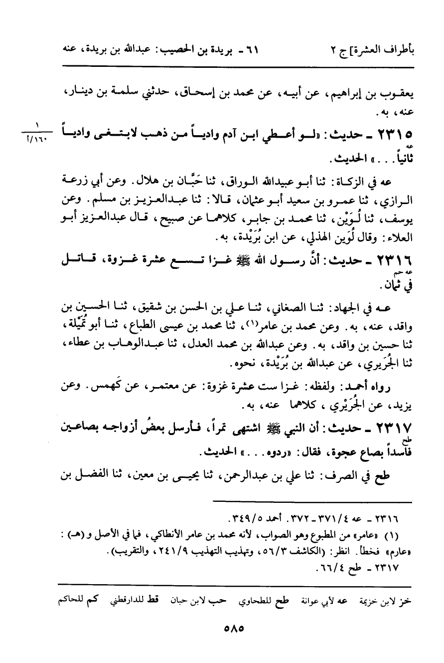 عه فِي الزَّكَاةِ: ثنا أَبُو عُبَيْدِ اللَّهِ الْوَرَّاقُ، ثنا حَبَّانُ بْنُ هِلالٍ. وَعَنْ أَبِي زُرْعَةَ الرَّازِيِّ، ثَنا عَمْرُو بْنُ سَعِيدٍ أَبُو عُثْمَانَ، قَالا: ثنا عَبْدُ الْعَزِيزِ بْنُ مُسْلِمٍ. وَعَنْ يُوسُفَ، ثنا لُوَيْنٌ، ثنا مُحَمَّدُ بْنُ جَابِرٍ، كِلاهُمَا عَنْ صُبَيْحٍ، قَالَ عَبْدُ الْعَزِيزِ أَبُو الْعَلاءِ: وَقَالَ لُوَيْنٌ الْهُذَلِيُّ، عَنِ ابْنِ بُرَيْدَةَ، بِهِ.