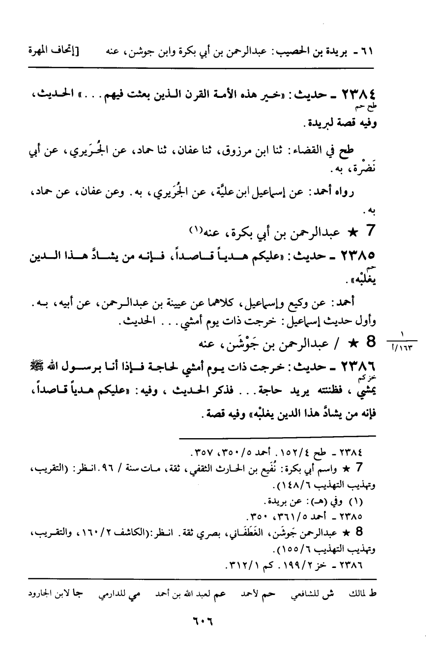 2384 - حَدِيثٌ (طح حم) : " خَيْرُ هَذِهِ الأُمَّةِ الْقَرْنُ الَّذِينَ بُعِثْتُ فِيهِمْ ... " الْحَدِيثَ، وَفِيهِ قِصَّةٌ لِبُرَيْدَةَ.