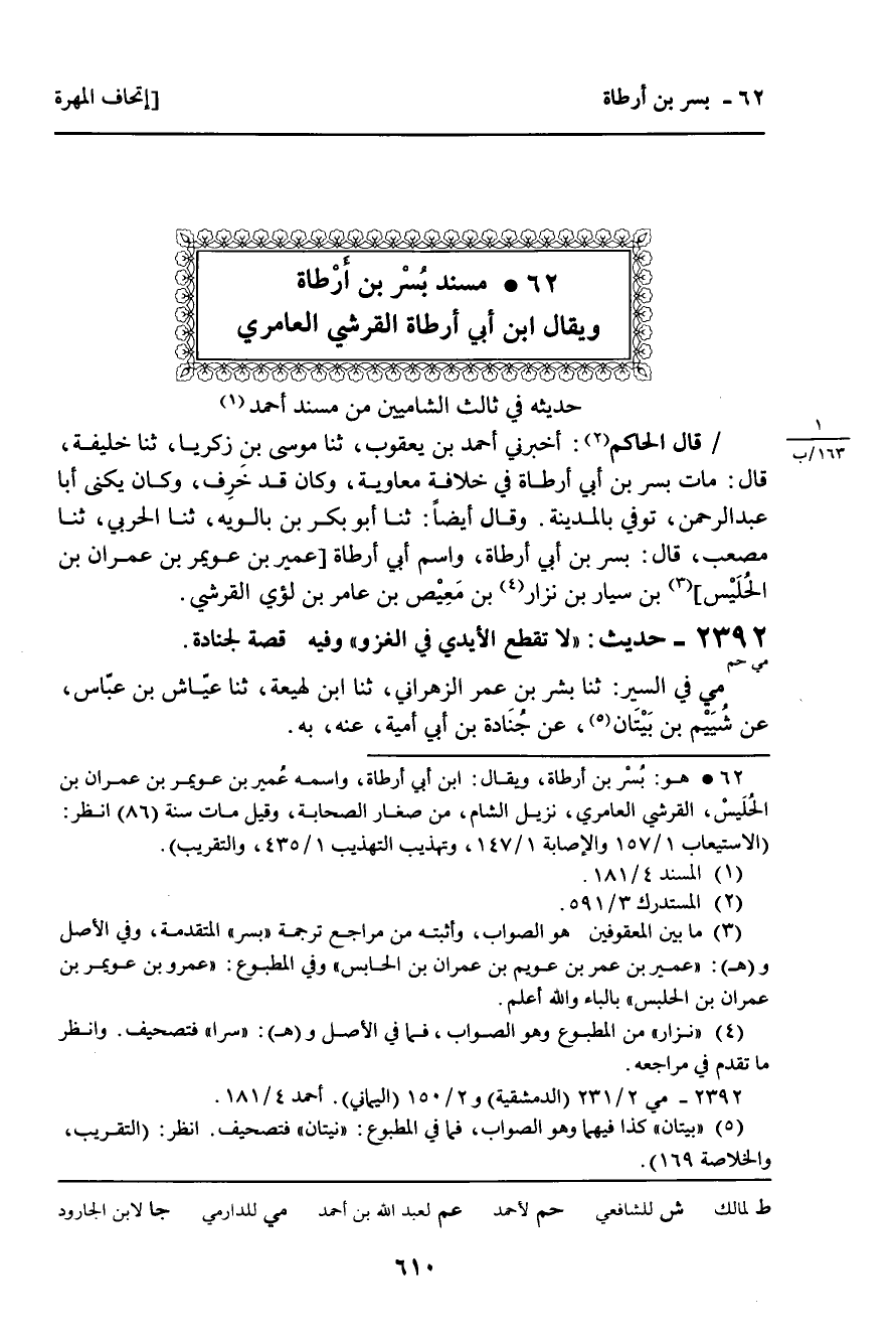 62 ـ مُسْنَدُ بُسْرِ بْنِ أَرْطَأَةَ