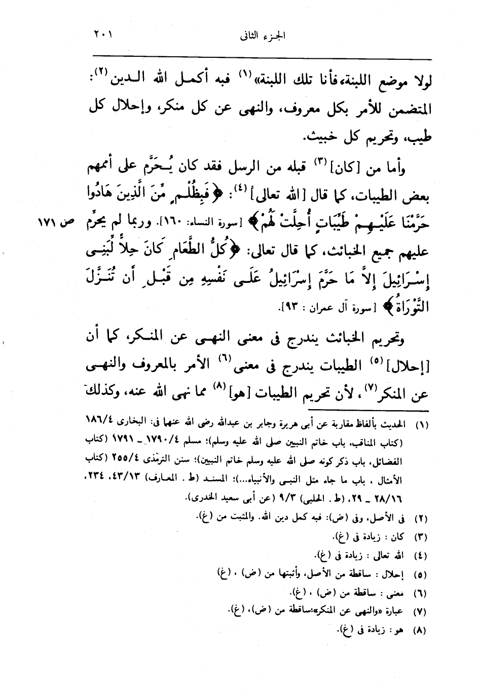 واما من كَانَ قبله من الرُّسُل فقد كَانَ يحرم على اممهم بعض الطَّيِّبَات كَمَا قَالَ الله تَعَالَى فبظلم من الَّذين هادوا حرمنا عَلَيْهِم طَيّبَات احلت لَهُم سُورَة النِّسَاء 160 وَرُبمَا لم يحرم عَلَيْهِم جَمِيع الْخَبَائِث كَمَا قَالَ تَعَالَى كل الطَّعَام كَانَ حلا لبني اسرائيل الا مَا حرم اسرائيل على نَفسه من قبل ان تنزل التَّوْرَاة سُورَة آل عمرَان 93