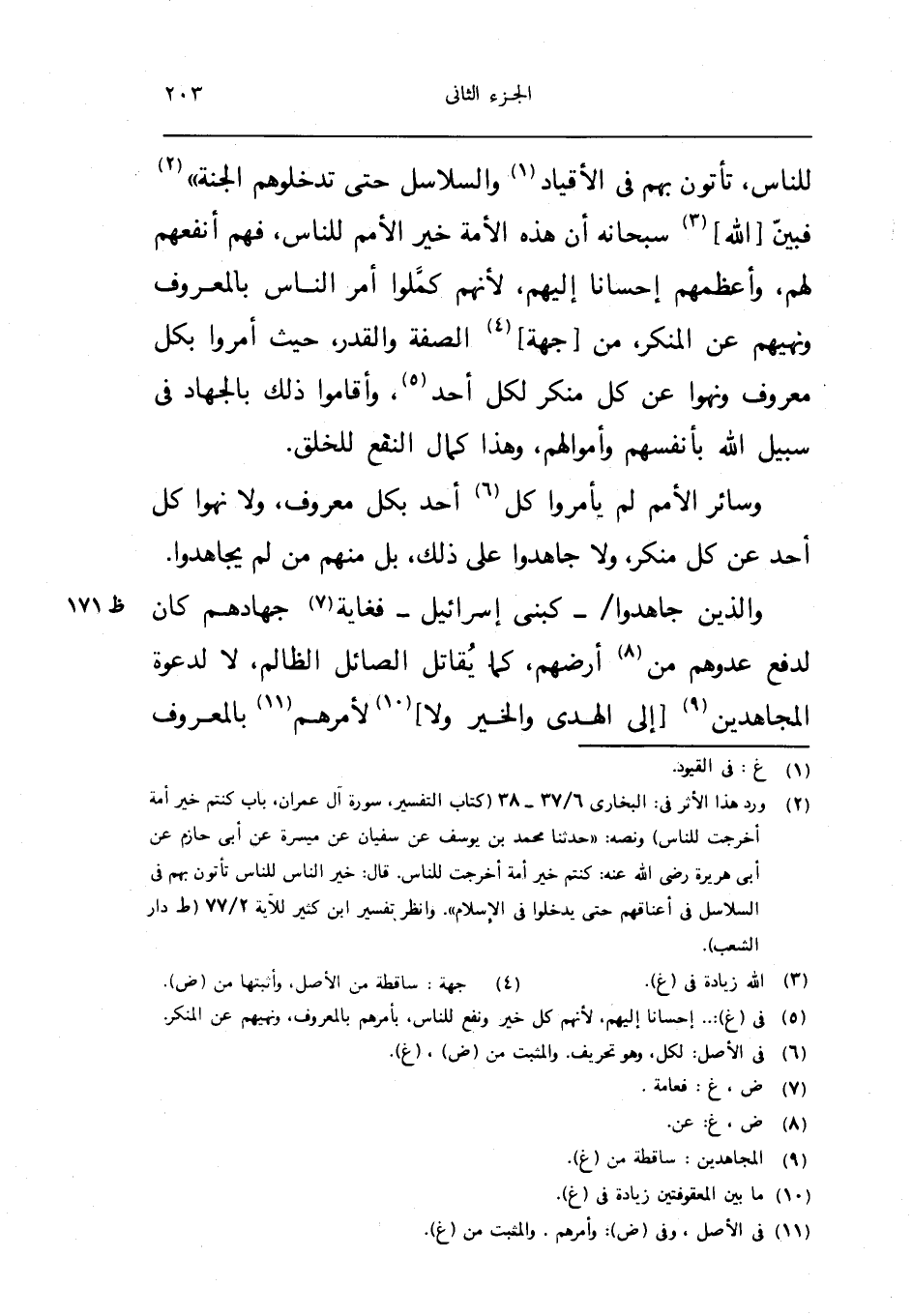 وَسَائِر الامم لم يأمروا كل اُحْدُ بِكُل مَعْرُوف وَلَا نهوا كل اُحْدُ عَن كل مُنكر وَلَا جاهدوا على ذَلِك بل مِنْهُم من لم يجاهدوا وَالَّذين جاهدوا كبنى اسرائيل فغاية جهادهم كَانَ لدفع عدوهم من ارضهم كَمَا يُقَاتل الصَّائِل الظَّالِم لَا لدَعْوَة الْمُجَاهدين الى الْهدى وَالْخَيْر وَلَا لأمرهم بِالْمَعْرُوفِ