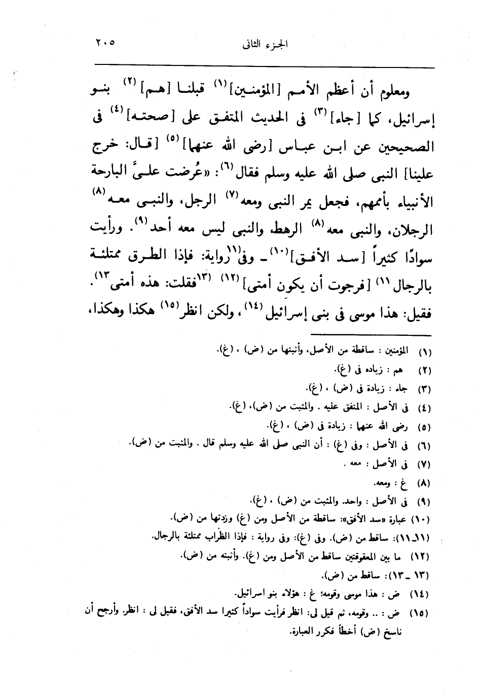 وَمَعْلُوم ان اعظم الامم الْمُؤمنِينَ قبلنَا هم بَنو اسرائيل كَمَا جَاءَ فِي الحَدِيث الْمُتَّفق على صِحَّته فِي الصَّحِيحَيْنِ عَن ابْن عَبَّاس رَضِي الله عَنْهُمَا قَالَ خرج علينا النَّبِي صلى الله عَلَيْهِ وَسلم فَقَالَ عرضت على البارحة الانبياء بأممهم فَجعل يمر النَّبِي وَمَعَهُ الرجل وَالنَّبِيّ مَعَه الرّجلَانِ وَالنَّبِيّ مَعَه الرَّهْط وَالنَّبِيّ لَيْسَ مَعَه اُحْدُ وَرَأَيْت سوادا كثيرا سد الْأُفق وَفِي رِوَايَة فَإِذا الطَّرِيق ممتلئة بِالرِّجَالِ فرجوت ان يكون امتي فَقلت هَذِه امتي فَقيل هَذَا مُوسَى فِي بني اسرئيل وَلَكِن انْظُر هَكَذَا وَهَكَذَا