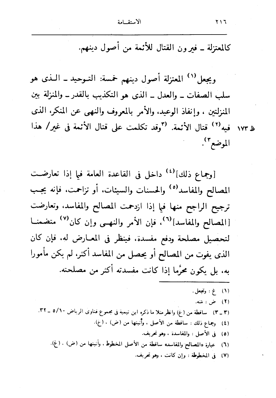 كالمعتزلة فيرون الْقِتَال للأئمة من اصول دينهم