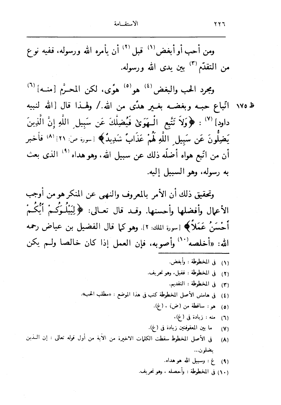 وَمُجَرَّد الْحبّ والبغض هُوَ هوى لَكِن الْمحرم مِنْهُ اتِّبَاع حبه وبغضه بِغَيْر هدى من الله وَلِهَذَا قَالَ الله لنَبيه دَاوُد {وَلَا تتبع الْهوى فيضلك عَن سَبِيل الله إِن الَّذين يضلون عَن سَبِيل الله لَهُم عَذَاب شَدِيد} سُورَة ص 21 فَأخْبر ان من اتبع هَوَاهُ اضله ذَلِك عَن سَبِيل الله وَهُوَ هداه الَّذِي بعث بِهِ رَسُوله وَهُوَ السَّبِيل اليه