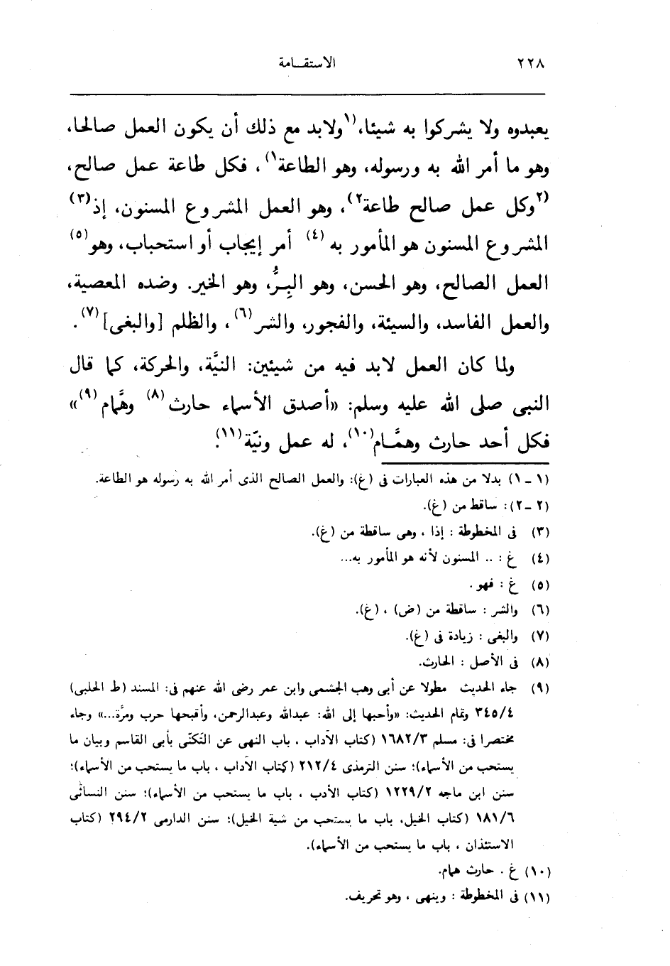 وَلما كَانَ الْعَمَل لَا بُد فِيهِ من شَيْئَيْنِ النِّيَّة وَالْحَرَكَة كَمَا قَالَ النَّبِي صلى الله عَلَيْهِ وَسلم اصدق الاسماء حَارِث وَهَمَّام فَكل اُحْدُ حَارِث وَهَمَّام لَهُ عمل وَنِيَّة