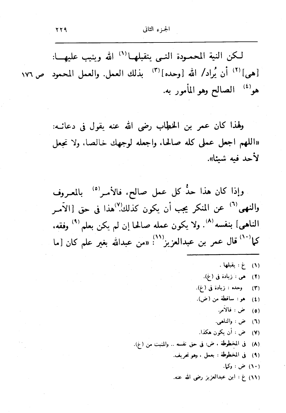 واذا كَانَ هَذَا حد كل عمل صَالح فَالْأَمْر بِالْمَعْرُوفِ وَالنَّهْي عَن الْمُنكر يجب ان يكون كَذَلِك هَذَا فِي حق الامر الناهي بِنَفسِهِ وَلَا يكون عمله صَالحا ان لم يكن بِعلم وَفقه كَمَا قَالَ عمر بن عبد الْعَزِيز من عبد الله بِغَيْر علم كَانَ مَا