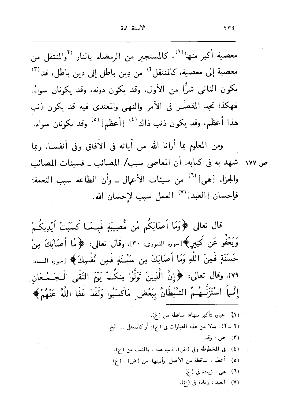 قَالَ تَعَالَى {وَمَا أَصَابَكُم من مُصِيبَة فبمَا كسبت أَيْدِيكُم وَيَعْفُو عَن كثير} سُورَة الشورى 30 وَقَالَ تَعَالَى {مَا أَصَابَك من حَسَنَة فَمن الله وَمَا أَصَابَك من سَيِّئَة فَمن نَفسك} سُورَة النِّسَاء 79 وَقَالَ تَعَالَى {إِن الَّذين توَلّوا مِنْكُم يَوْم التقى الْجَمْعَانِ إِنَّمَا استزلهم الشَّيْطَان بِبَعْض مَا كسبوا وَلَقَد عَفا الله عَنْهُم}