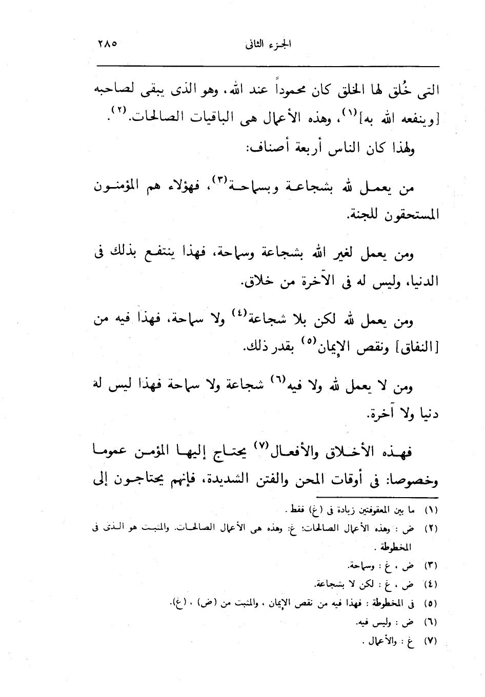 الَّتِي خلق لَهُ الْخلق كَانَ مَحْمُودًا عِنْد الله وهوالذي يبْقى لصَاحبه وينفعه الله بِهِ وَهَذِه الاعمال هِيَ الْبَاقِيَات الصَّالِحَات وَلِهَذَا كَانَ النَّاس اربعة اصناف