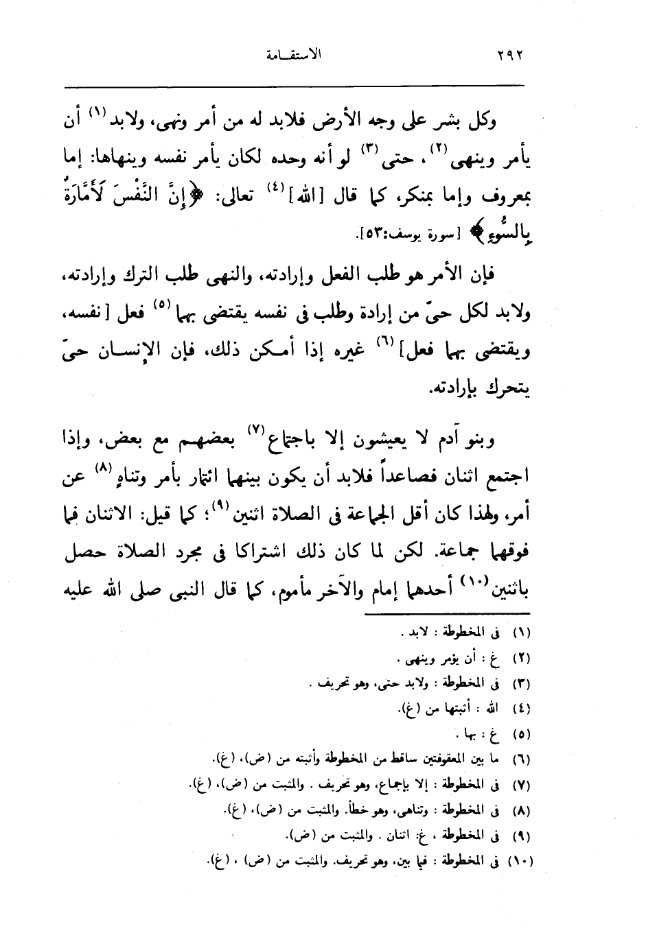 وكل بشر على وَجه الارض فَلَا بُد لَهُ من امْر وَنهي وَلَا بُد ان يَأْمر وَينْهى حَتَّى لَو انه وَحده لَكَانَ يَأْمر نَفسه وينهاها اما بِمَعْرُوف واما بمنكر كَمَا قَالَ الله تَعَالَى {إِن النَّفس لأمارة بالسوء} سُورَة يُوسُف 53