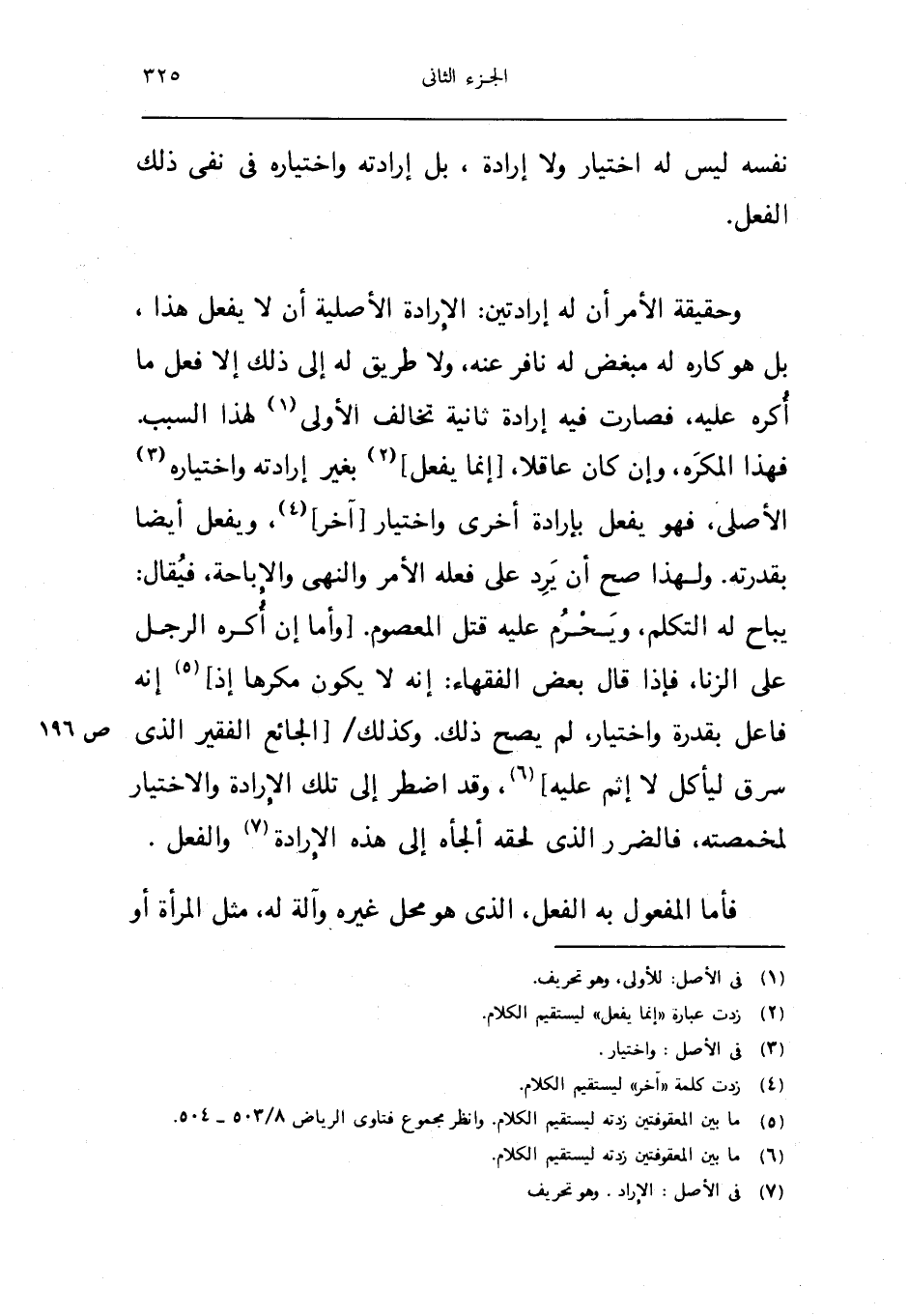 وَحَقِيقَة الْأَمر ان لَهُ ارادتين الارادة الاصلية ان لَا يفعل هَذَا بل هُوَ كَارِه لَهُ مبغض لَهُ نافر عَنهُ وَلَا طَرِيق لَهُ الى ذَلِك الا فعل مَا اكره عَلَيْهِ فَصَارَت فِيهِ ارادة ثَانِيَة تخَالف الاولى لهَذَا السَّبَب فَهَذَا الْمُكْره وان كَانَ عَاقِلا انما يفعل بِغَيْر ارادته واختياره الاصلي فَهُوَ يفعل بِإِرَادَة اخرى وَاخْتِيَار اخر وَيفْعل ايضا بقدرته وَلِهَذَا صَحَّ ان يرد على فعله الامر والنهى والاباحة فَيُقَال يُبَاح لَهُ التَّكَلُّم وَيحرم عَلَيْهِ قتل الْمَعْصُوم واما ان اكره الرجل على الزِّنَا فَإِذا قَالَ بعض الْفُقَهَاء انه لَا يكون مكْرها اذ انه فَاعل بقدرة وَاخْتِيَار لم يَصح ذَلِك وَكَذَلِكَ الجائع الْفَقِير الَّذِي سرق ليَأْكُل لَا اثم عَلَيْهِ وَقد اضْطر الى تِلْكَ الارادة وَالِاخْتِيَار لمخمصته فالضرر الَّذِي لحقه أَلْجَأَهُ الى هَذِه الارادة وَالْفِعْل