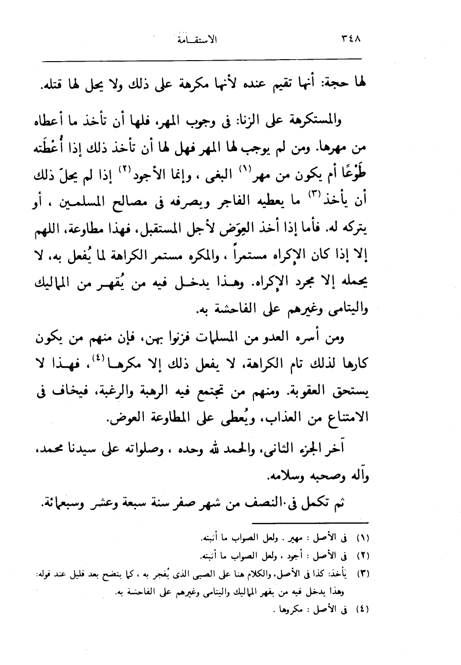 وَمن اسره الْعَدو من المسلمات فزنوا بِهن فَإِن مِنْهُم من يكون كَارِهًا لذَلِك تَامّ الْكَرَاهَة لَا يفعل ذَلِك الا مكْرها فَهَذَا لَا يسْتَحق الْعقُوبَة وَمِنْهُم من تَجْتَمِع فِيهِ الرهبة وَالرَّغْبَة فيخاف فِي الِامْتِنَاع من الْعَذَاب وَيُعْطى على المطاوعة الْعِوَض