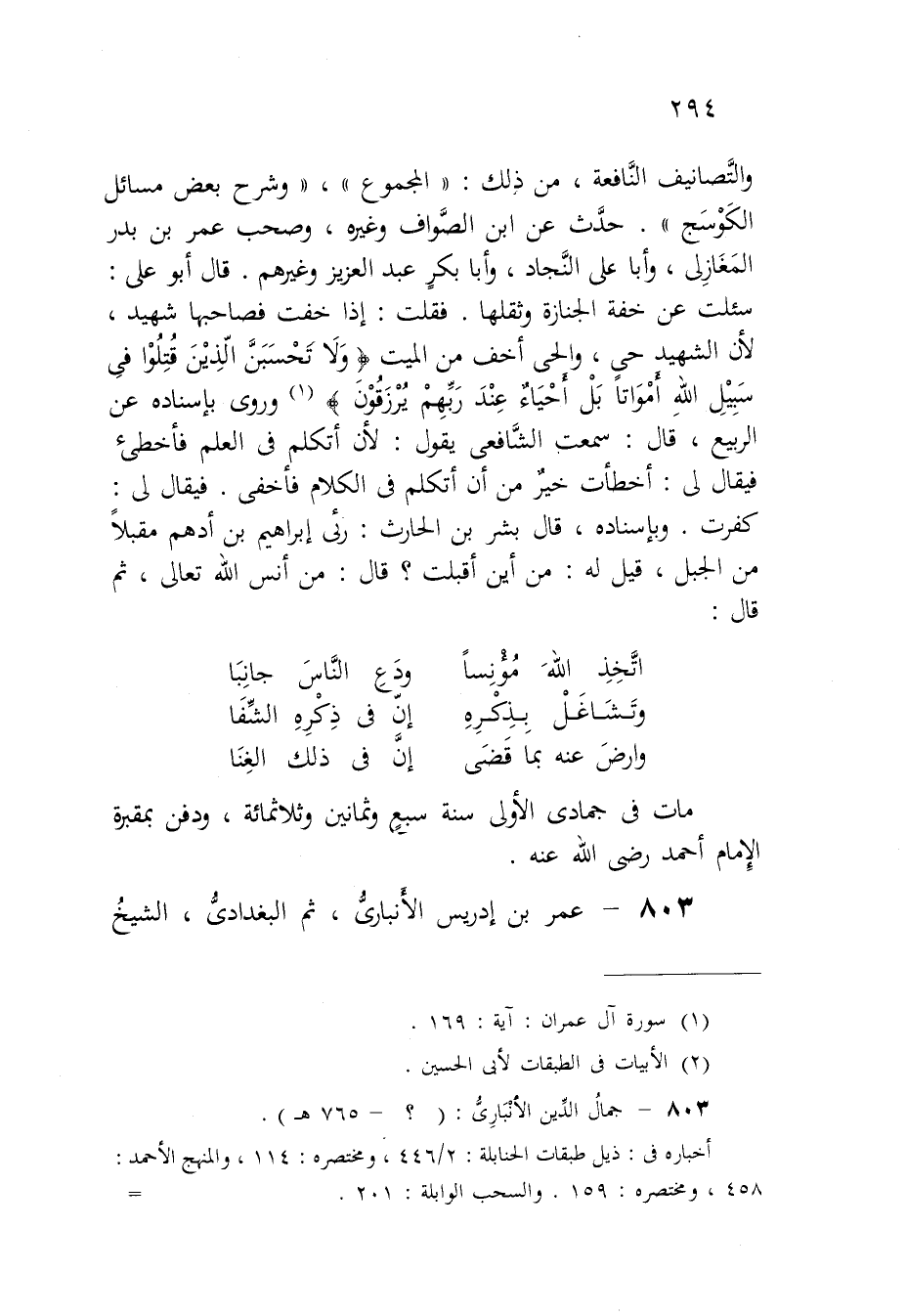 (وَأَرْض عَنهُ بِمَا قضى ... إِن فِي ذَلِك الْغِنَا) مَاتَ فِي جُمَادَى الأولى سنة سبع وَثَمَانِينَ وثلاثمائة وَدفن بمقبرة الإِمَام أَحْمد رَضِي الله عَنهُ