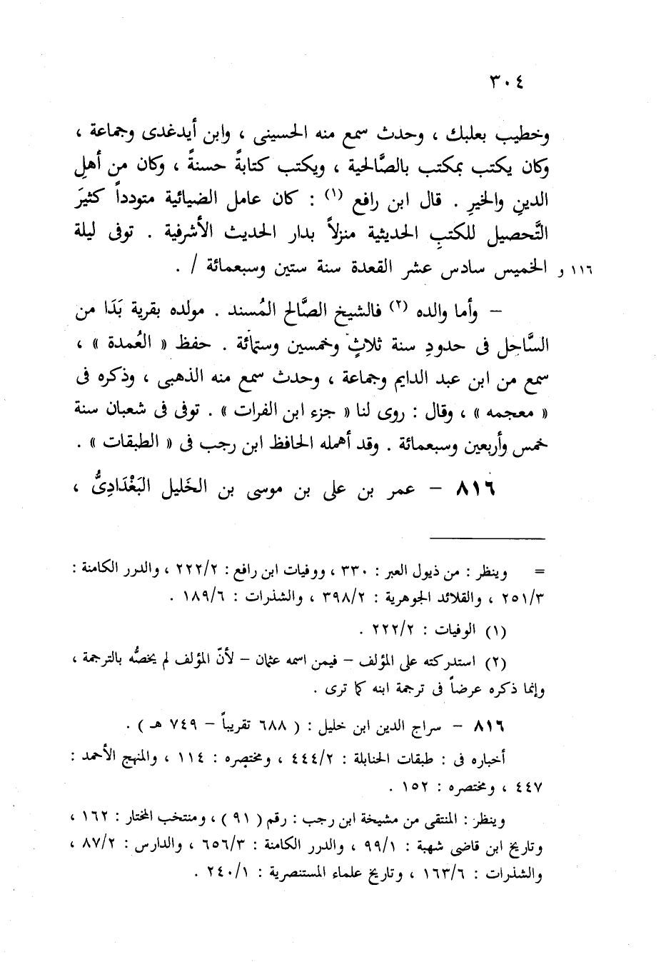 وخطيب بعلبك وَحدث سمع مِنْهُ الْحُسَيْنِي وَابْن أيدغدى وَجَمَاعَة وَكَانَ يكْتب بمكتب بالصالحية وَيكْتب كِتَابَة حَسَنَة وَكَانَ من أهل الدّين وَالْخَيْر قَالَ ابْن رَافع كَانَ عَامل الضيائية متوددا كثير التَّحْصِيل للكتب الحديثية منزلا بدار الحَدِيث الأشرفية توفّي لَيْلَة الْخَمِيس سادس عشر الْقعدَة سنة سِتِّينَ وَسَبْعمائة وَأما وَالِده فالشيخ الصَّالح الْمسند مولده بقرية بدا من السَّاحِل فِي حُدُود سنة ثَلَاث وَخمسين وسِتمِائَة حفظ الْعُمْدَة سمع من ابْن عبد الدايم وَجَمَاعَة وَحدث سمع مِنْهُ الذَّهَبِيّ وَذكره فِي مُعْجَمه وَقَالَ روى لنا جُزْء ابْن الْفُرَات توفّي فِي شعْبَان سنة خمس وَأَرْبَعين وَسَبْعمائة وَقد أهمله الْحَافِظ ابْن رَجَب فِي الطَّبَقَات