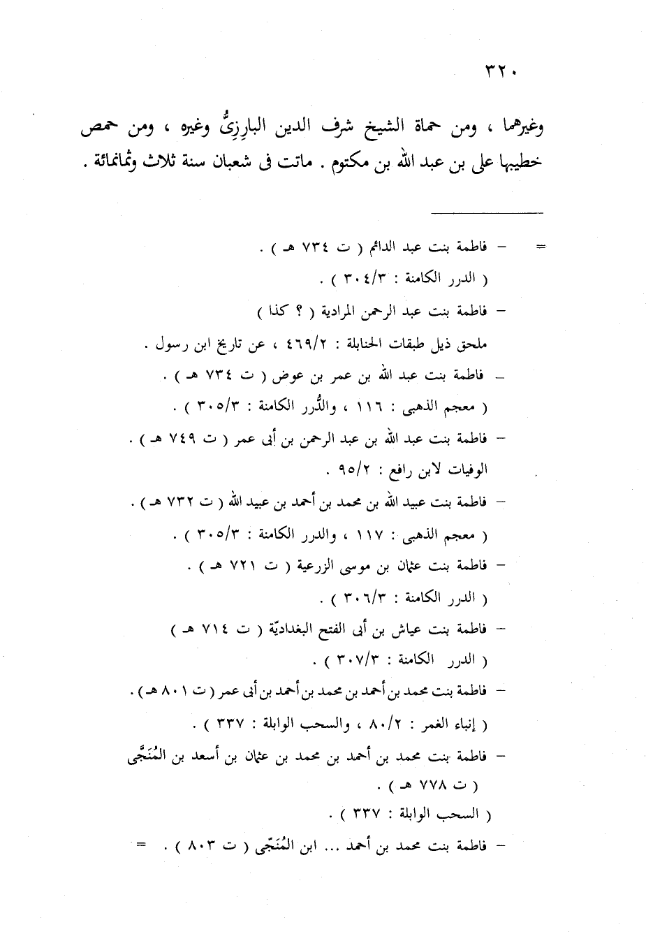 وَغَيرهمَا وَمن حماة الشَّيْخ شرف الدّين الْبَارِزِيّ وَغَيره وَمن حمص خطيبها عَليّ بن عبد الله بن مَكْتُوم مَاتَت فِي شعْبَان سنة ثَلَاث وَثَمَانمِائَة