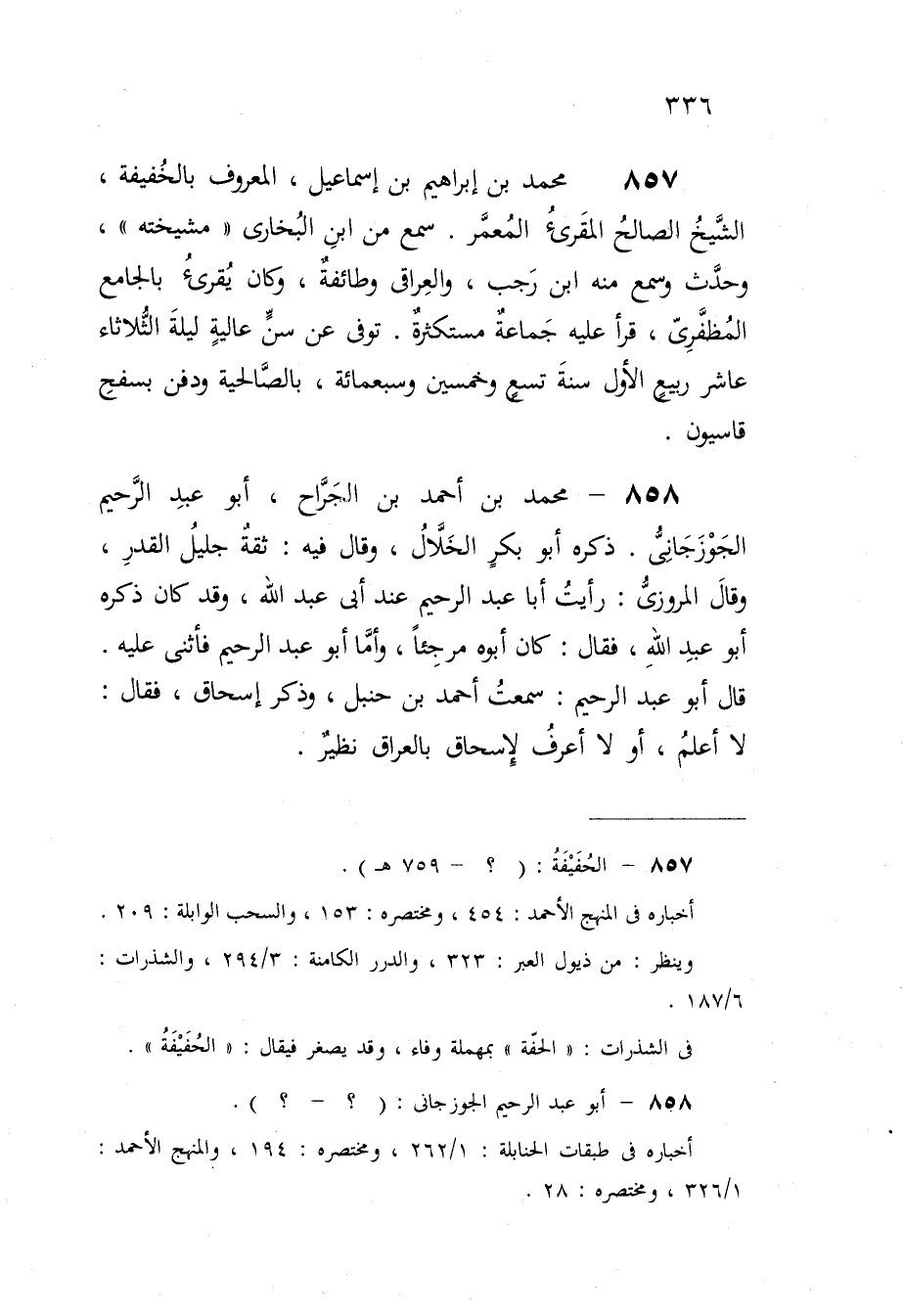 857 - مُحَمَّد بن إِبْرَاهِيم بن إِسْمَاعِيل الْمَعْرُوف بالخفيفة الشَّيْخ الصَّالح المقرىء المعمر