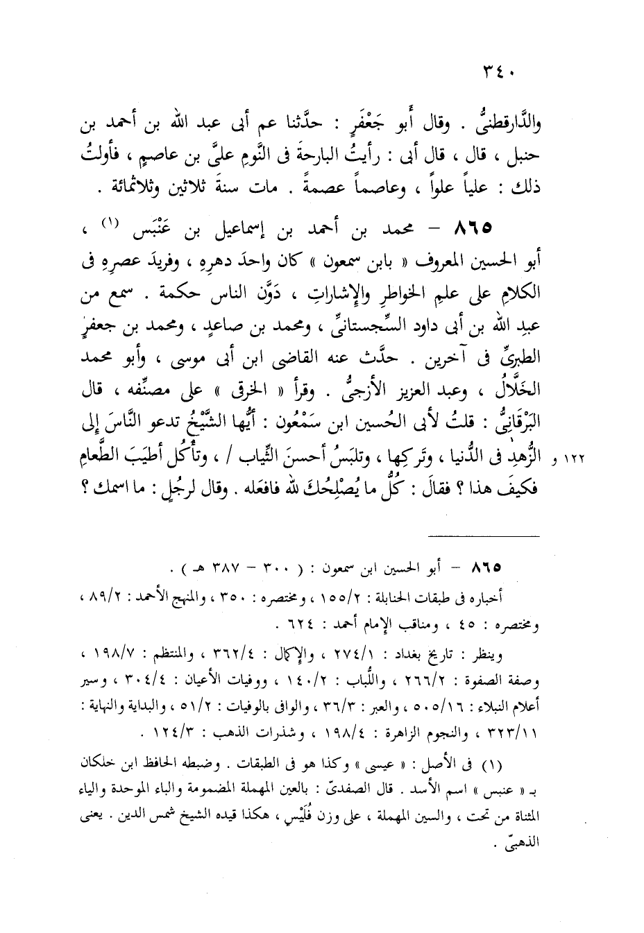 865 - مُحَمَّد بن أَحْمد بن إِسْمَاعِيل بن عَنْبَس أَبُو الْحُسَيْن الْمَعْرُوف بِابْن سمعون كَانَ وَاحِد دهره وفريد عصره فِي الْكَلَام على علم الخواطر والإشارات دون النَّاس حِكْمَة