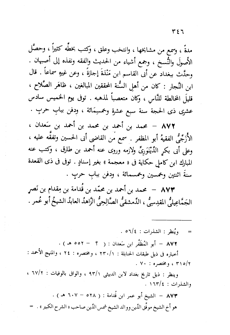 873 - مُحَمَّد بن أَحْمد بن مُحَمَّد بن قدامَة بن مِقْدَام بن نصر الجماعيلى الْمَقْدِسِي الدِّمَشْقِي الصَّالِحِي الزَّاهِد العابد الشَّيْخ أَبُو عمر