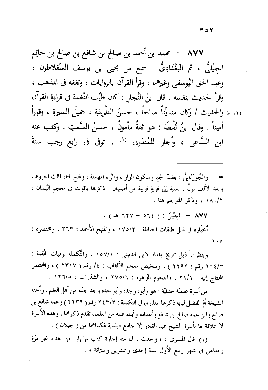 877 - مُحَمَّد بن أَحْمد بن صَالح بن شَافِع بن صَالح بن حَاتِم الجيلي ثمَّ الْبَغْدَادِيّ