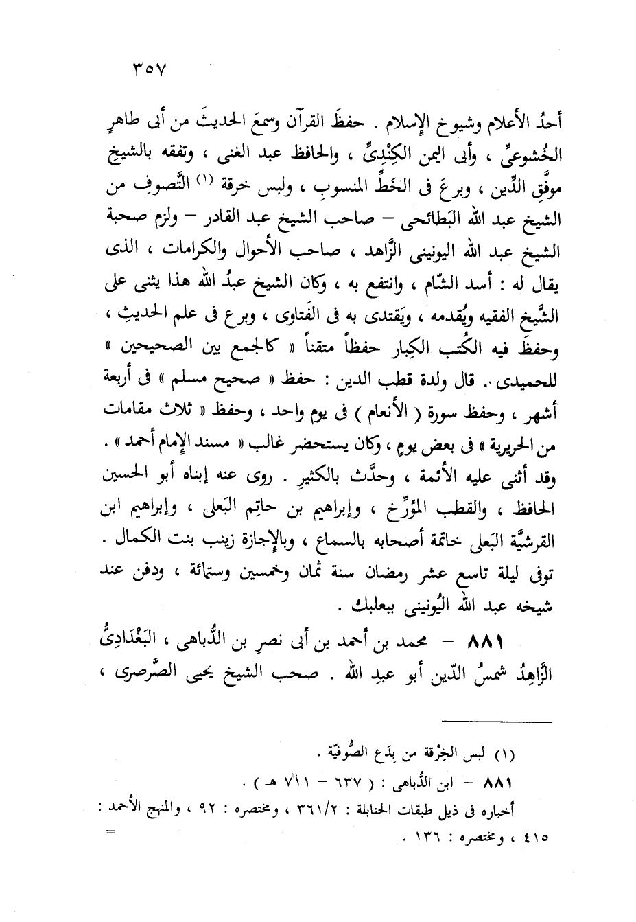 881 - مُحَمَّد بن أَحْمد بن ابي نصر بن الدباهي الْبَغْدَادِيّ الزَّاهِد شمس الدّين أَبُو عبد الله