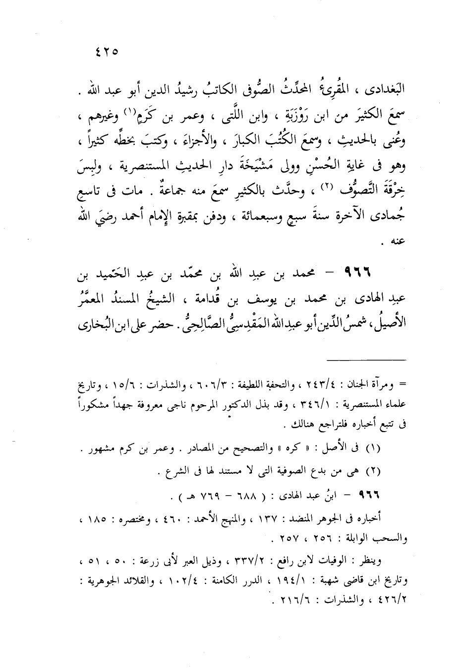 966 - مُحَمَّد بن عبد الله بن مُحَمَّد بن عبد الحميد بن عبد الْهَادِي بن مُحَمَّد بن يُوسُف بن قدامَة الشَّيْخ الْمسند المعمر الْأَصِيل شمس الدّين أَبُو عبد الله الْمَقْدِسِي الصَّالِحِي
