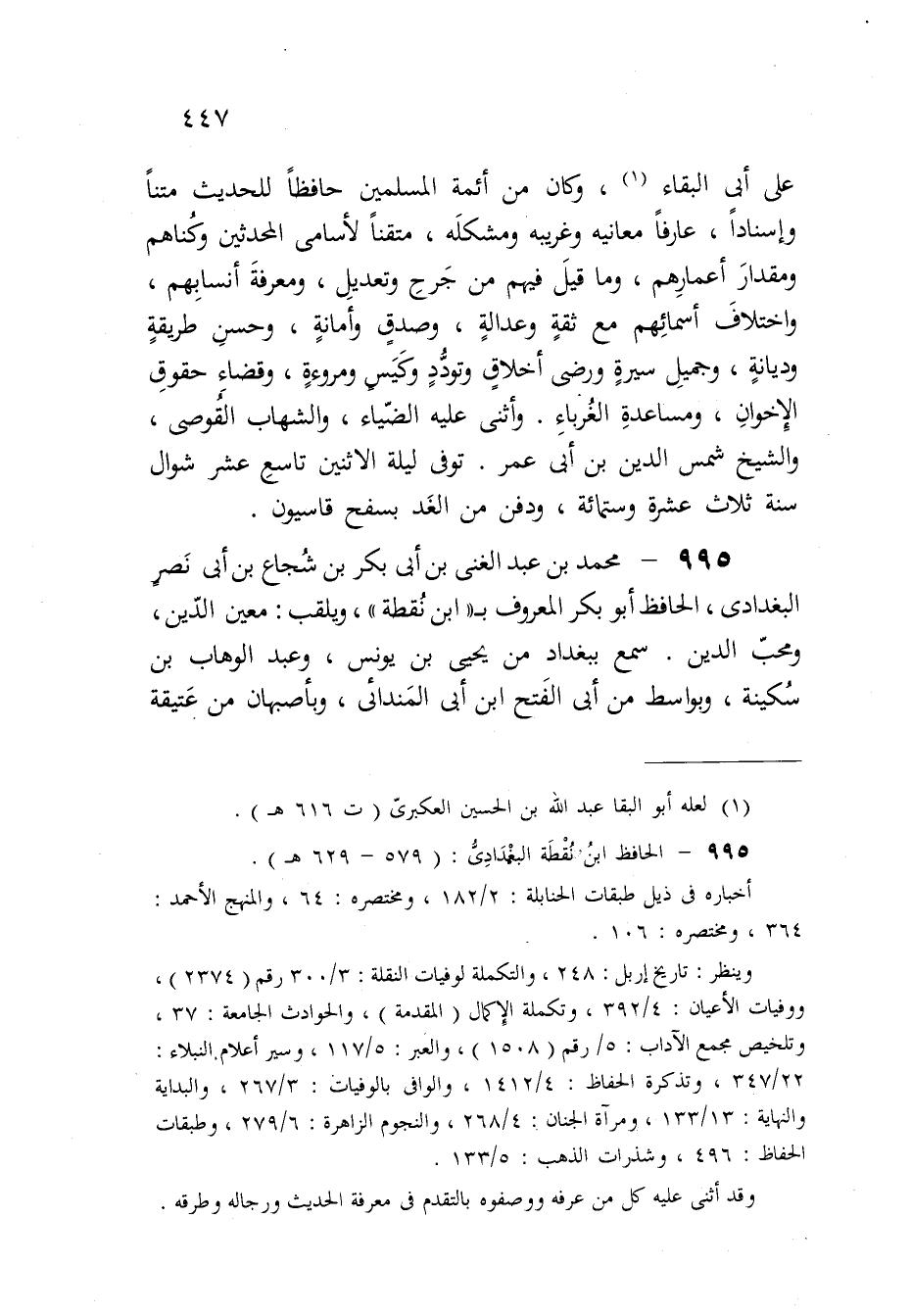 995 - مُحَمَّد بن عبد الْغَنِيّ بن أبي بكر بن شُجَاع بن أبي نصر الْبَغْدَادِيّ الْحَافِظ أَبُو بكر الْمَعْرُوف بِابْن نقطة ويلقب معِين الدّين ومحب الدّين سمع بِبَغْدَاد من يحيى بن يُونُس وَعبد الْوَهَّاب بن سكينَة وبواسط من أبي الْفَتْح ابْن أبي المندائي وبأصبهان من عتيقة