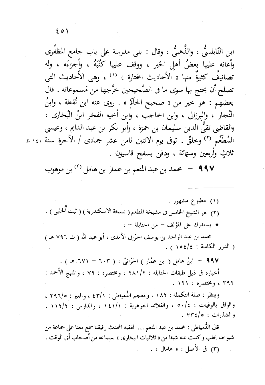 997 - مُحَمَّد بن عبد الْمُنعم بن عمار بن هامل بن موهوب