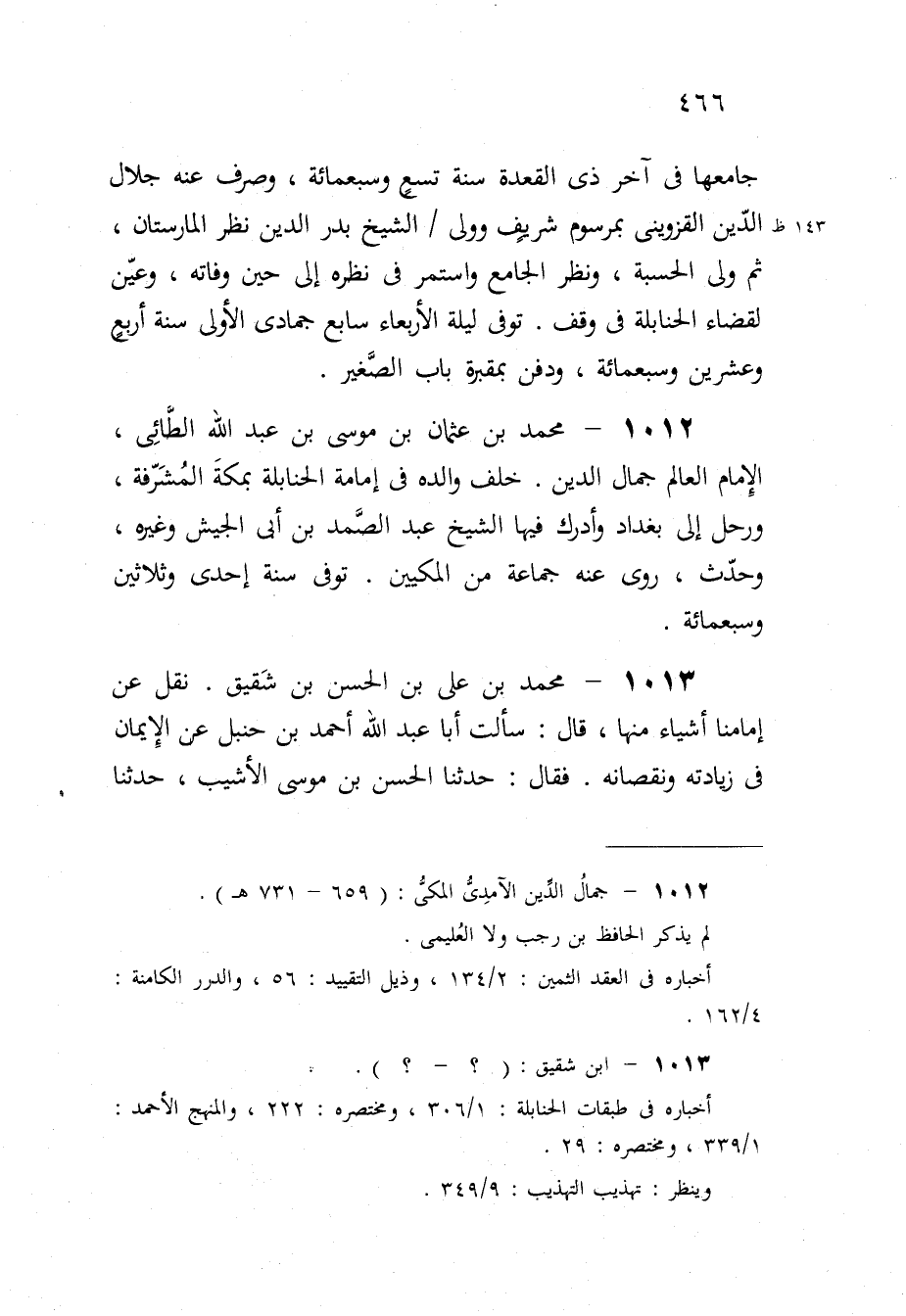 1012 - مُحَمَّد بن عُثْمَان بن مُوسَى بن عبد الله الطَّائِي الإِمَام الْعَالم جمال الدّين