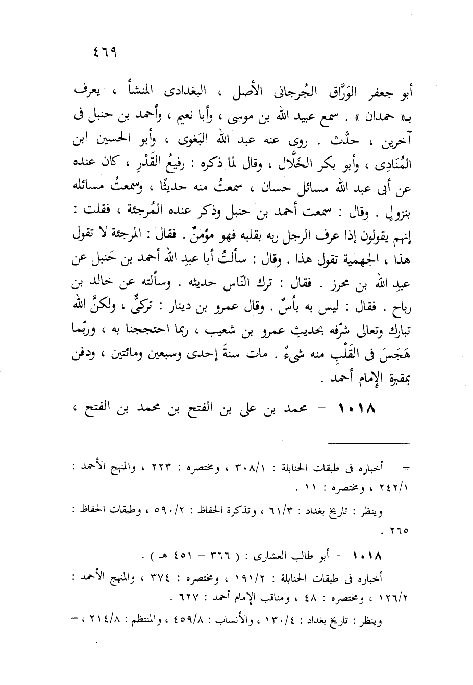 أَبُو جَعْفَر الْوراق الْجِرْجَانِيّ الأَصْل الْبَغْدَادِيّ المنشأ يعرف بحمدان سمع عبيد الله بن مُوسَى وَأَبا نعيم وَأحمد بن حَنْبَل فِي آخَرين حدث