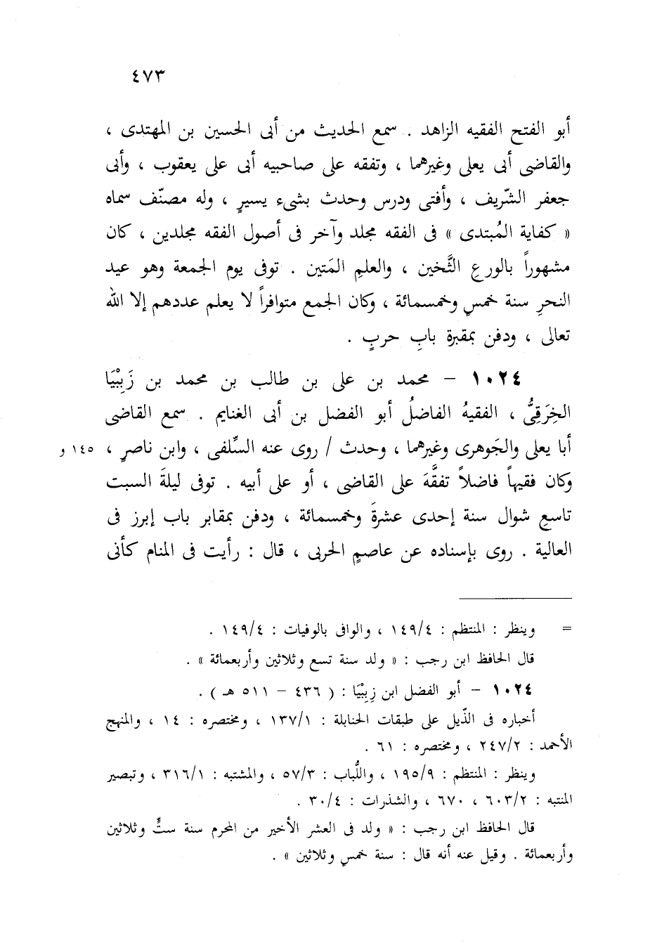 1024 - مُحَمَّد بن عَليّ بن طَالب بن مُحَمَّد بن زببيا الخرقى الْفَقِيه الْفَاضِل أَبُو الْفضل بن أبي الغنايم