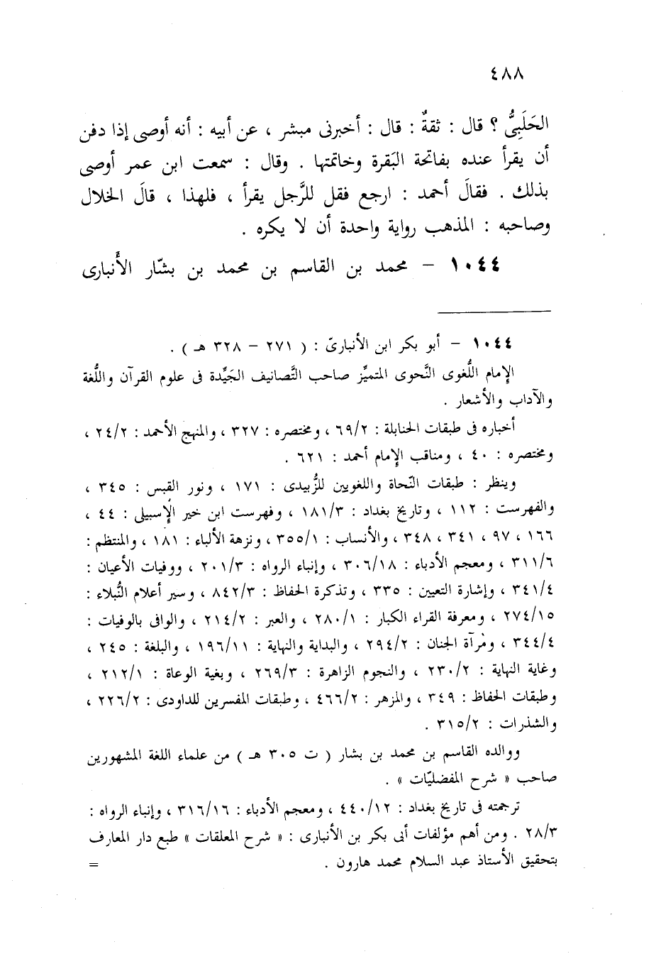 1044 - مُحَمَّد بن الْقَاسِم بن مُحَمَّد بن بشار الْأَنْبَارِي