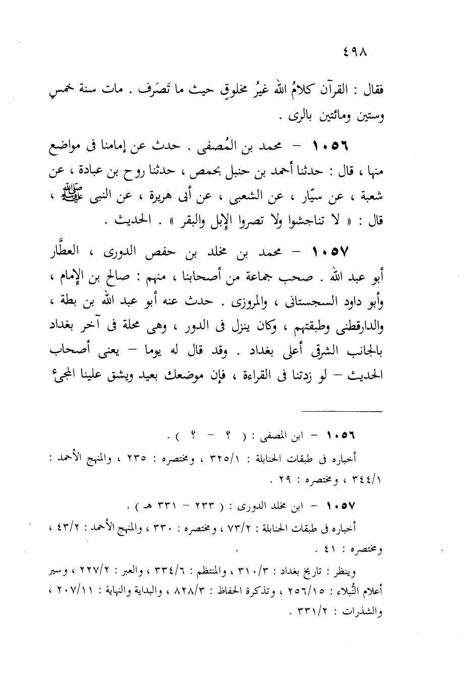 1057 - مُحَمَّد بن مخلد بن حَفْص الدوري الْعَطَّار أَبُو عبد الله صحب جمَاعَة من أَصْحَابنَا مِنْهُم صَالح بن الإِمَام وَأَبُو دَاوُد السجسْتانِي والمروزي
