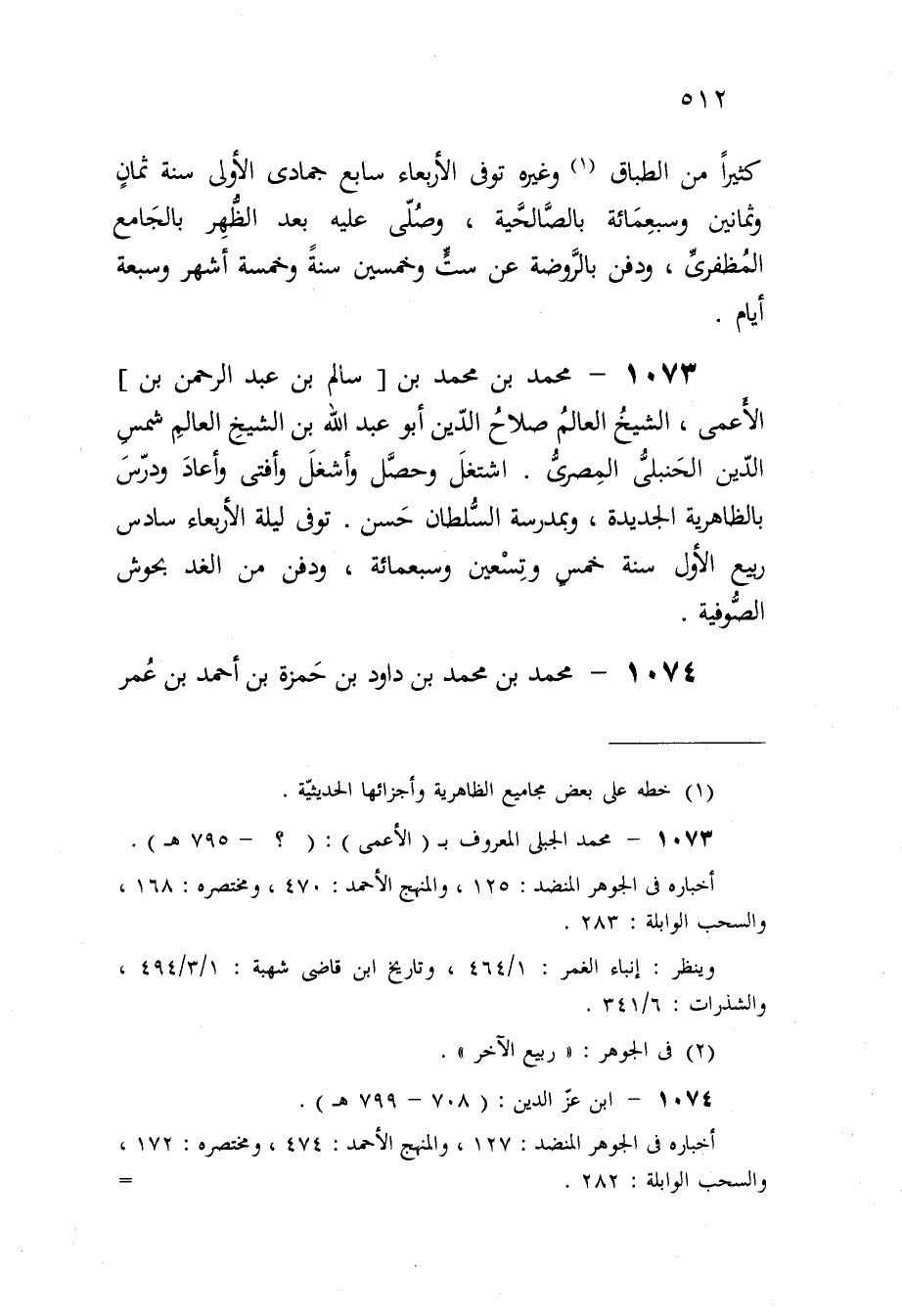 1073 - مُحَمَّد بن مُحَمَّد بن سَالم بن عبد الرَّحْمَن بن الْأَعْمَى الشَّيْخ الْعَالم صَلَاح الدّين أَبُو عبد الله بن الشَّيْخ الْعَالم شمس الدّين الْحَنْبَلِيّ الْمصْرِيّ