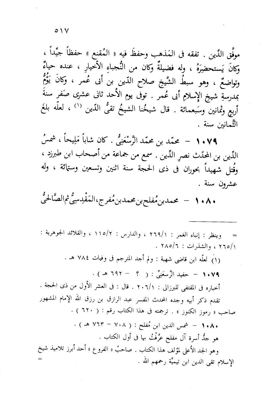 1080 - مُحَمَّد بن مُفْلِح بن مُحَمَّد بن مفرج الْمَقْدِسِي ثمَّ الصَّالِحِي