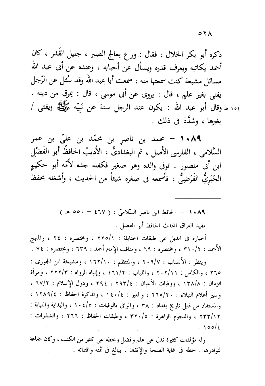 1089 - مُحَمَّد بن نَاصِر بن مُحَمَّد بن عَليّ بن عمر السلَامِي الْفَارِسِي الأَصْل ثمَّ الْبَغْدَادِيّ الأديب الْحَافِظ أَبُو الْفضل ابْن أبي مَنْصُور
