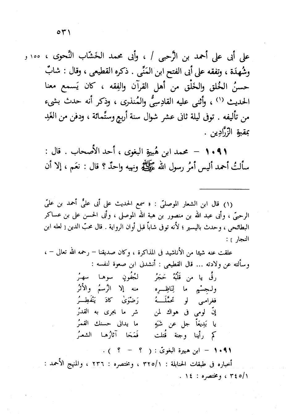 1091 - مُحَمَّد ابْن هُبَيْرَة الْبَغَوِيّ أحد الْأَصْحَاب