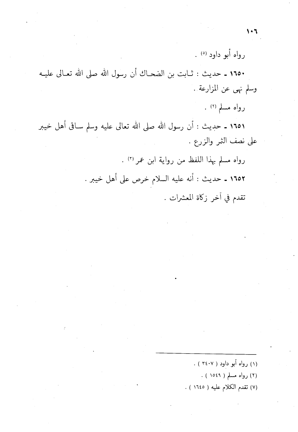 1651- حديث: أن رسول الله صلى الله تعالى عليه وسلم ساقى أهل خيبر على نصف الثمر والزرع.