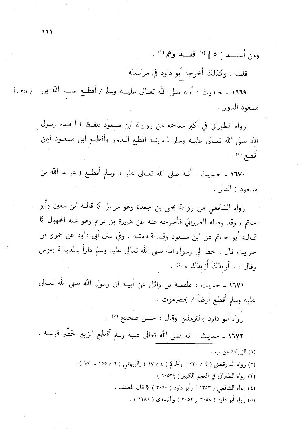 1669- حديث: أنه صلى الله تعالى عليه وسلم أقطع عبد الله بن مسعود الدور.