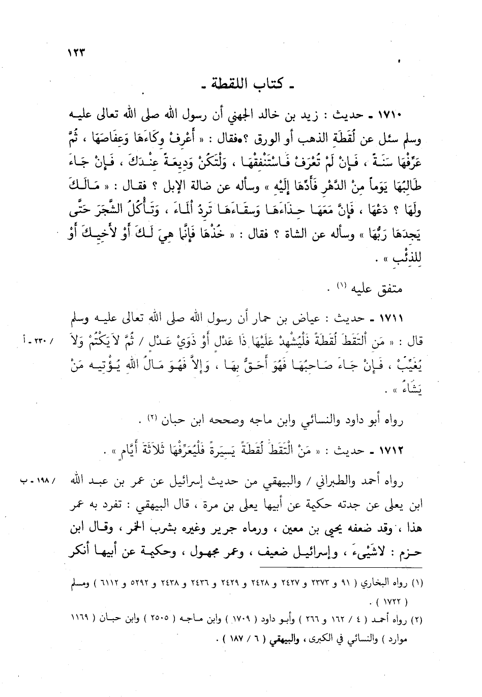 1712- حديث: "من التقط لقطة يسيرة فليعرفها ثلاثة أيامٍ".