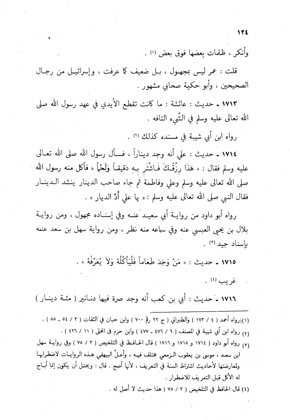 3 رواه أبو داود 1714 و1715 و1716 قال الحافظ في التلخيص 75/ 3 وفي رواية سهل بن سعد، موسى بن يعقوب الزمعي مختلف فيه، وأعل البيهقي هذه الروايات لاضطرابها ولمعارضتها لأحاديث اشتراط السنة في التعريف؛ لأنها أصح، قال: ويحتمل أن يكون إنما أباح له الأكل قبل التعريف للاضطرار.