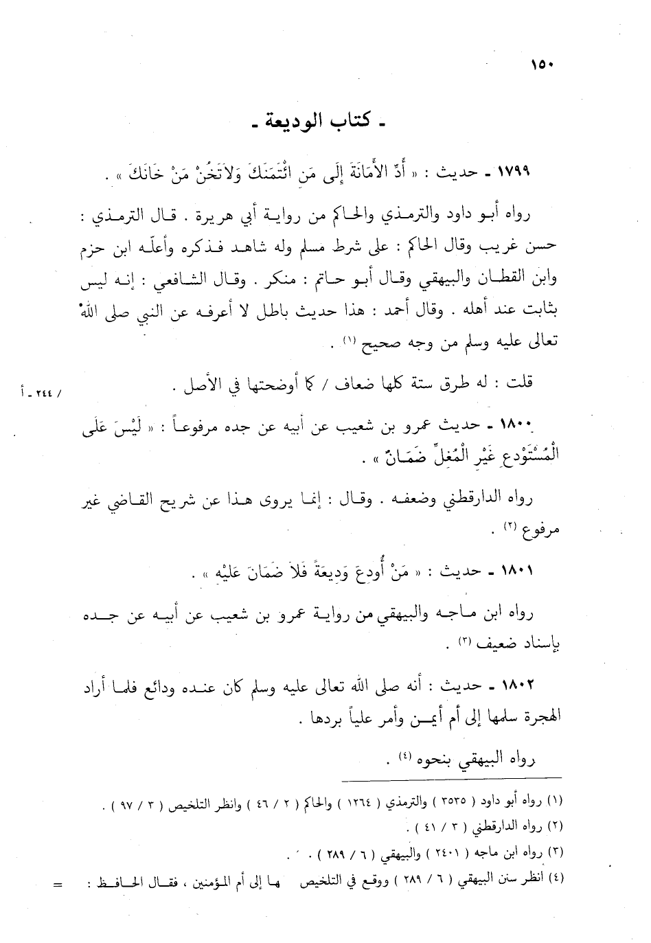 1801- حديث: "من أودع وديعة فلا ضمان عليه".
