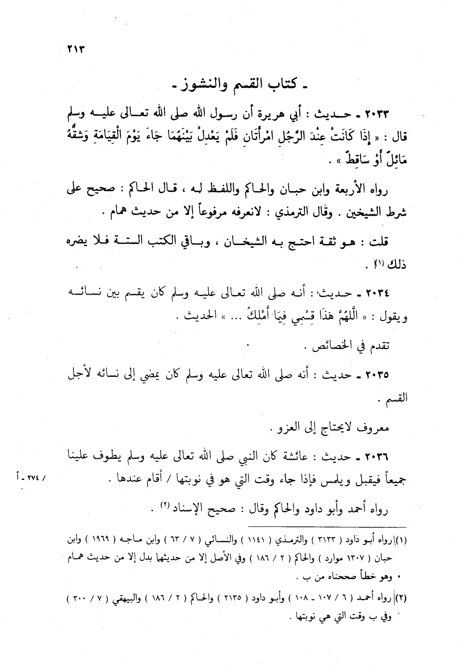 2033- حديث: أبي هريرة أن رسول الله صلى الله تعالى عليه وسلم، قال: "إذا كانت عند الرجل امرأتان فلم يعدل بينهما جاء يوم القيامة وشقه مائل أو ساقط".