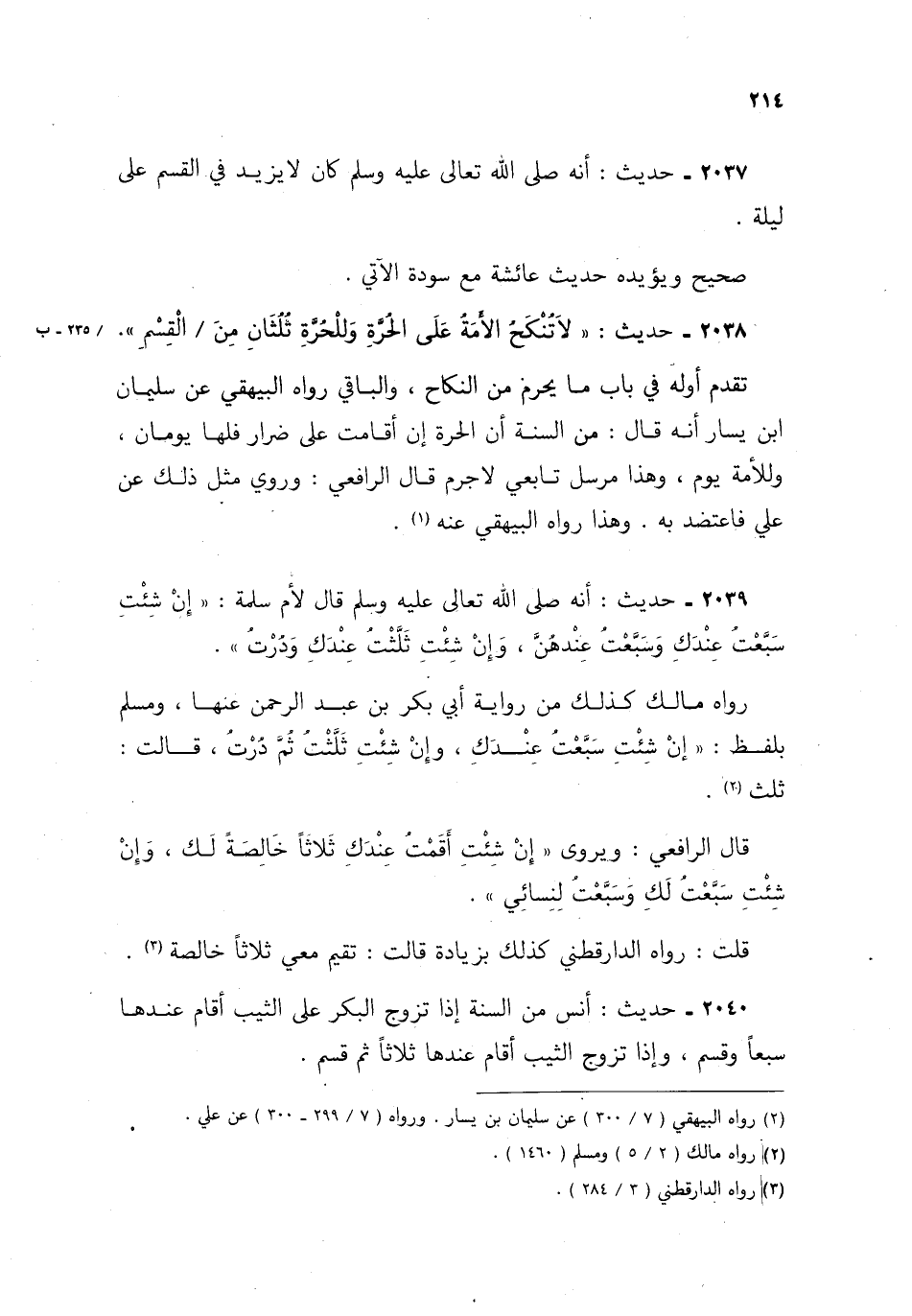2037- حديث: أنه صلى الله تعالى عليه وسلم كان لا يزيد في القسم على ليلة.